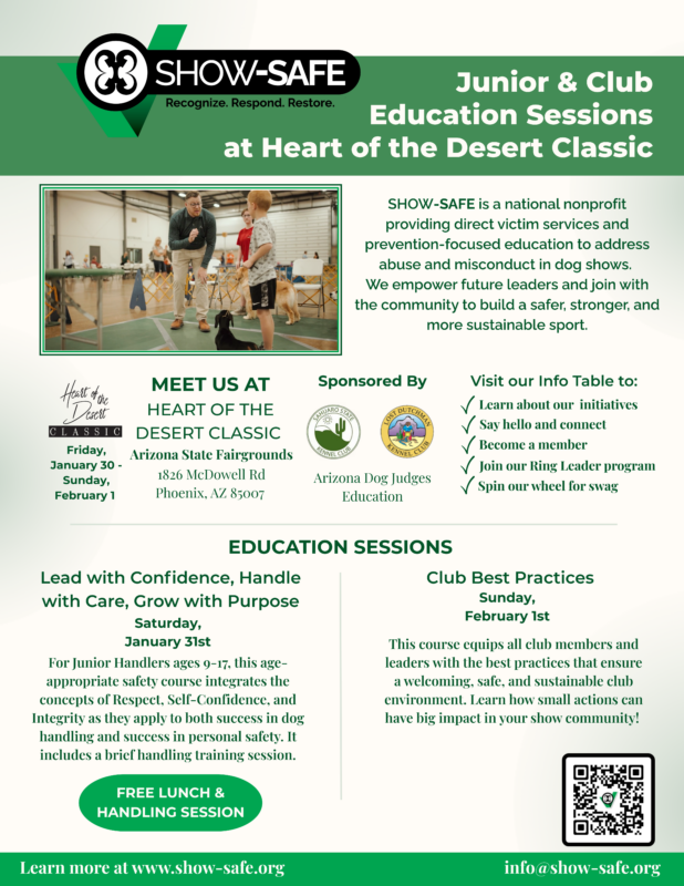 Come join us for the following education courses hosted by Sahuaro State Kennel Club and Lost Dutchman Kennel Club: