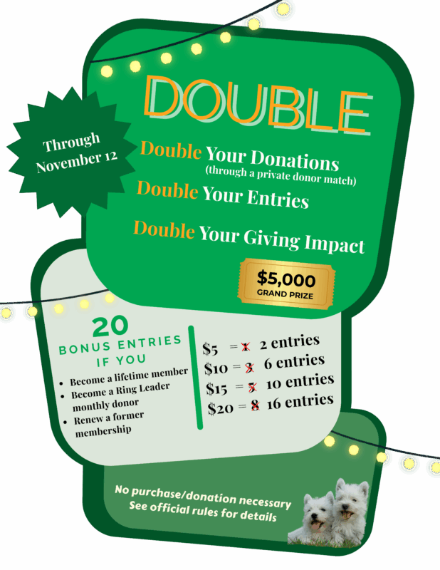 Now through November 12th – Double your donations and double your entries!